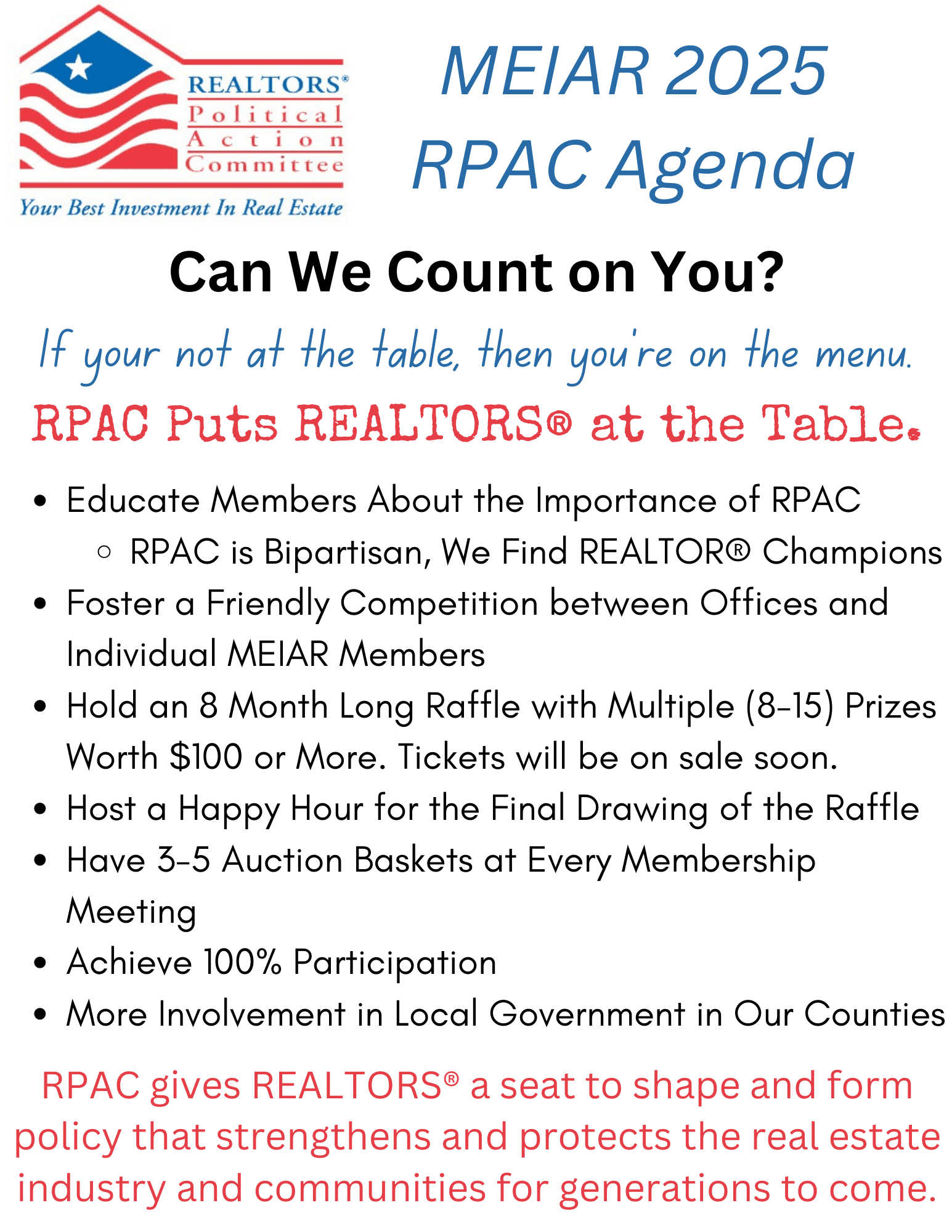 MEIAR REALTORS® Political Action Committee 10-Drawing Raffle